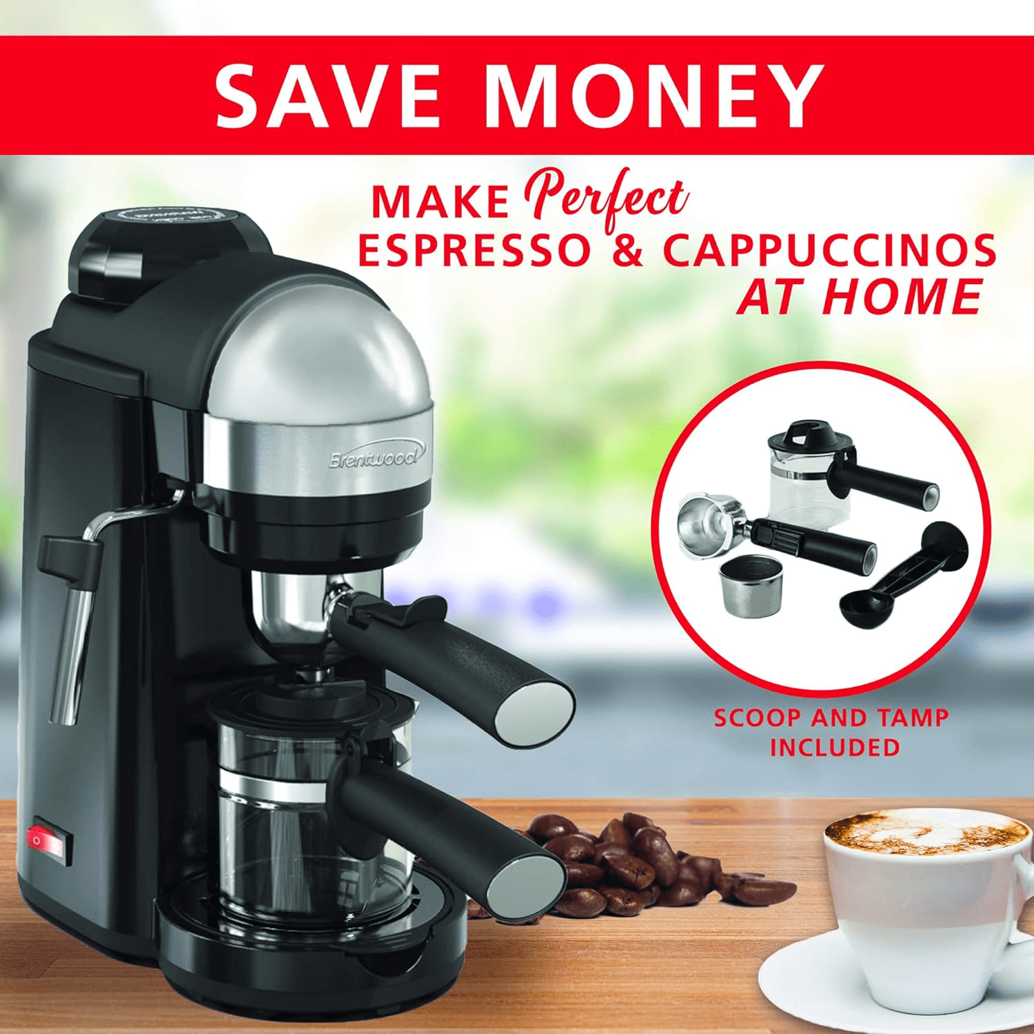 Brentwood GA-135BK Espresso and Cappuccino Maker, 4 Servings, Black