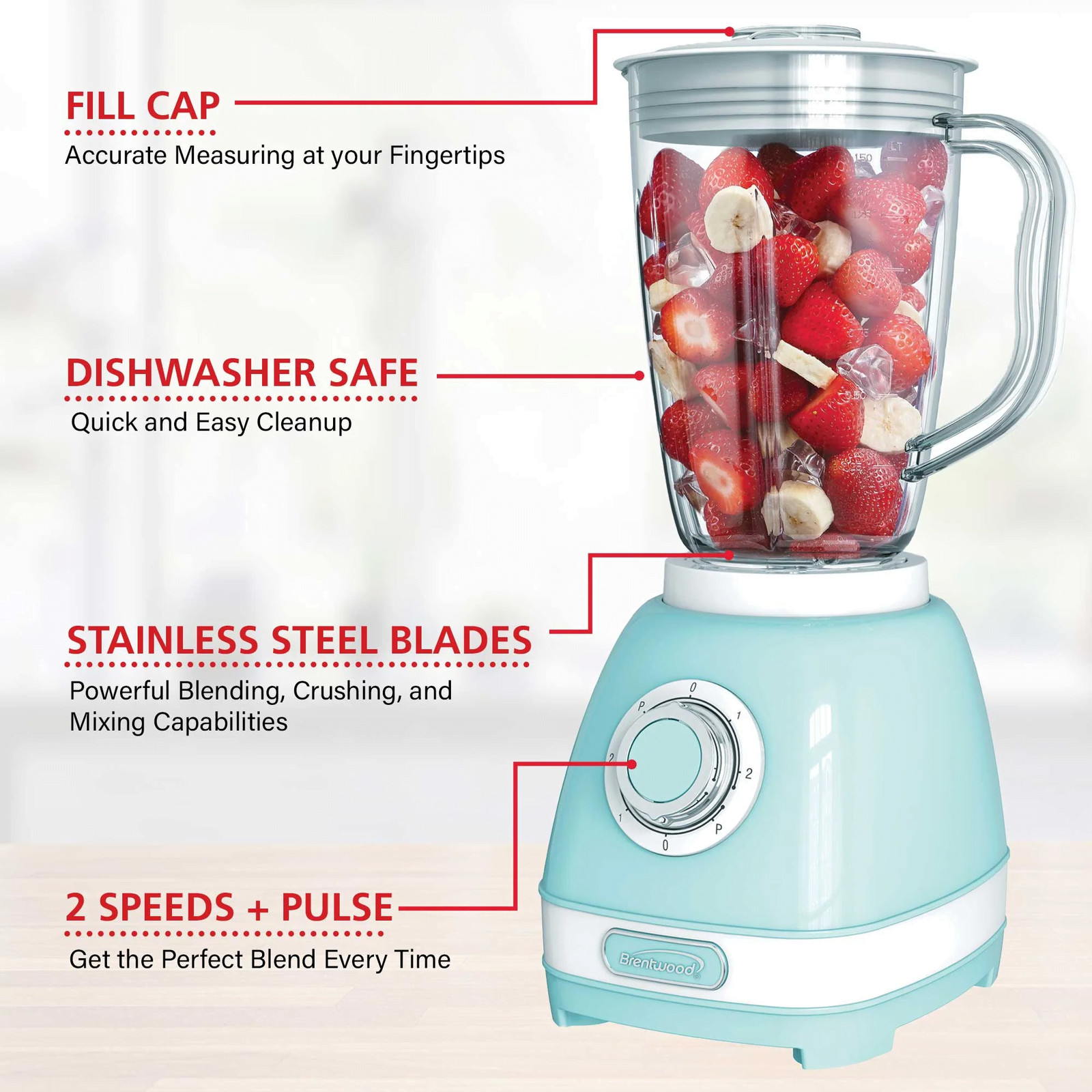 Brentwood JB-330BL 2-peed Retro Blender With 50 Ounce Plastic Jar, Blue