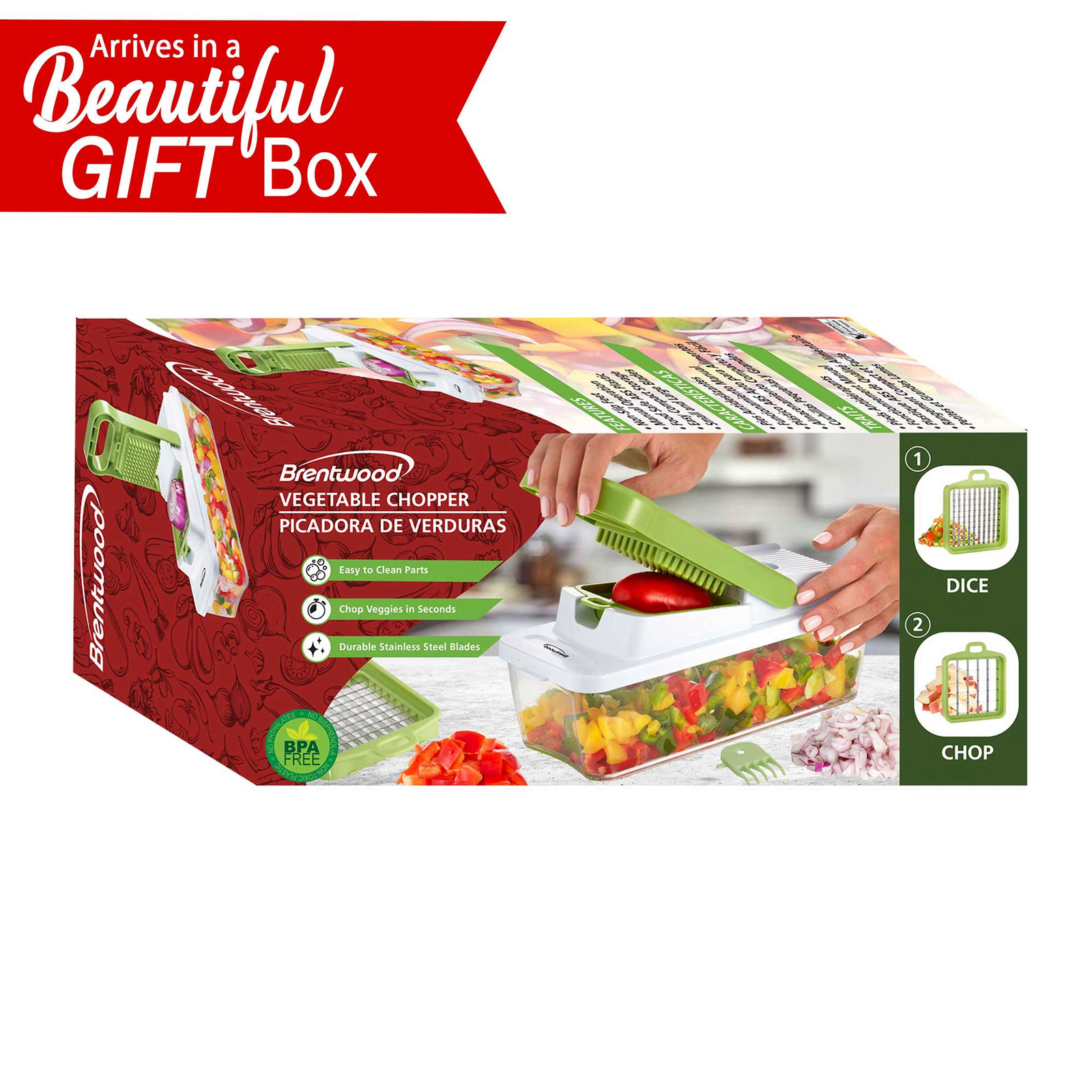 Brentwood KA-5023BK Pro Food Chopper And Vegetable Dicer With 6.3-cup Storage Container And Stainless Steel Blades, Black